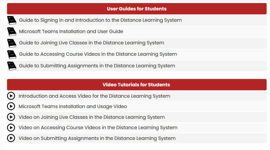 Dear Students, Click here to access the guides for the updated distance education system. LMS Login Access to Distance Education System