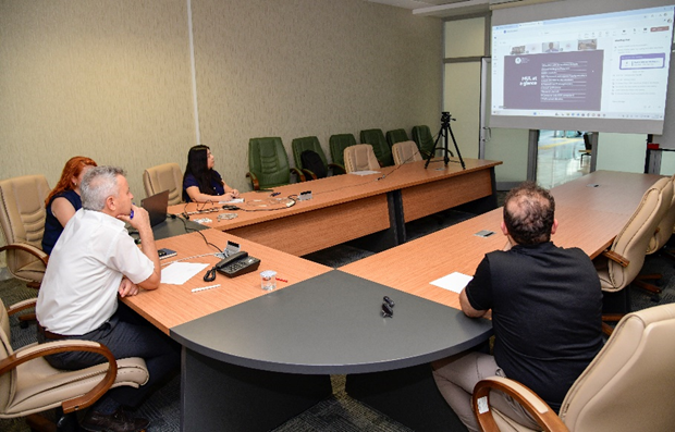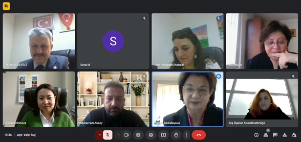Vice Rector of Konya Technical University Prof. Dr. Hüseyin Deveci, International Relations Coordinator Assoc. Prof. Dr. Muharrem Hilmi Aksoy, and International Relations Vice Coordinator Dr. Teslime Gökgöl had an online meeting with Azerbaijan University of Architecture and Construction's Vice Rector for Scientific Affairs, Prof. Dr. Nigar Aslanova; Vice Rector for International Relations, Prof. Dr. Nergiz Abdullayeva; Scientific Research Branch Manager, Assoc. Prof. Dr. Reyhan Ekberli; and Könül Şirinova.