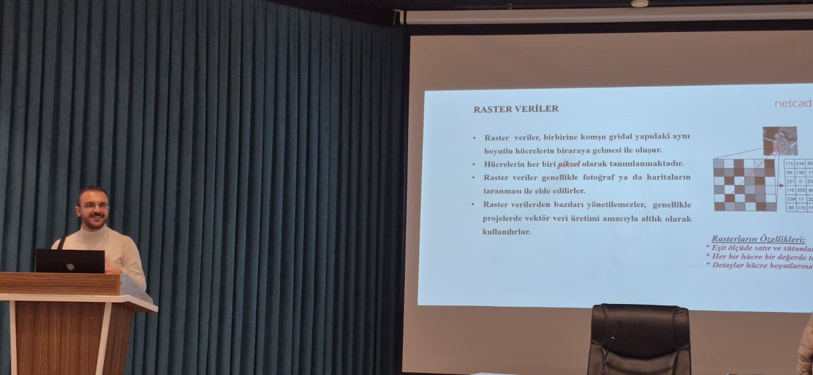 26.11.2025 Çarşamba Günü Halil Cin Konferans salonunda Bölümümüz ve Netcad firması tarafından ortaklaşa düzenlenen "Netcad Çözümleri Sunumu" başlıklı etkinlik kapsamında Üniversitemiz öğrencilerine sunum gerçekleştirilmiştir. Katkılarından dolayı NETCAD yetkilileri Sayın Sıla SOYUTEMİZ UYANIK Hanım'a, Sayın Furkan GÜL Bey'e, tüm akademik, idari personelimize ve tüm öğrencilerimize teşekkürü bir borç bilir, gelecek etkinliklerde yine birlikte olmayı temenni ederiz.