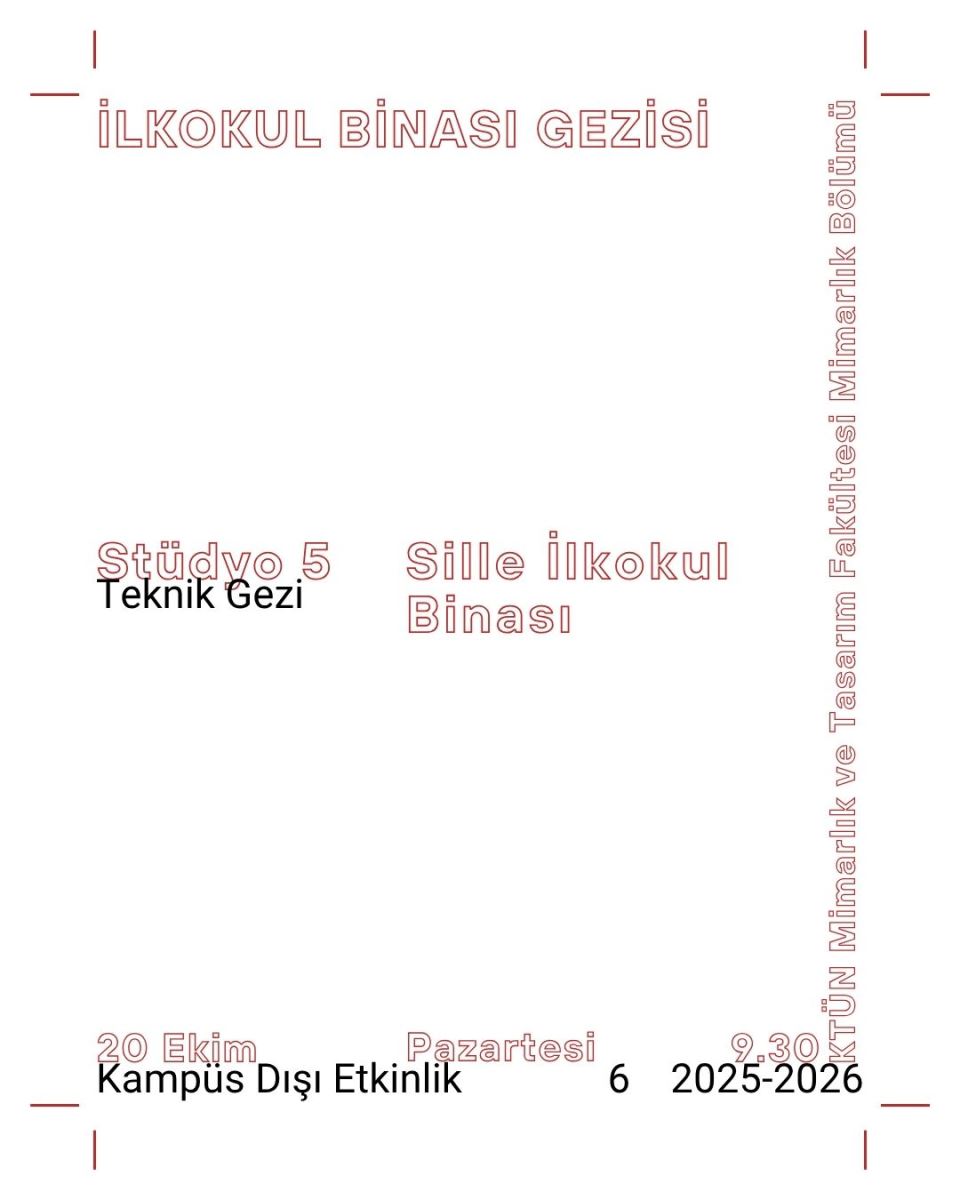 Stüdyo 5 dersi kapsamında Doç. Dr. Emine Kuyrukçu, Dr. Öğr. Üyesi H. Sena Azkur ve Öğr. Gör. Melda Arca yürütücülüğünde 20 ekim pazartesi günü Sille İlkokulu'na teknik gezi düzenlenmiştir.