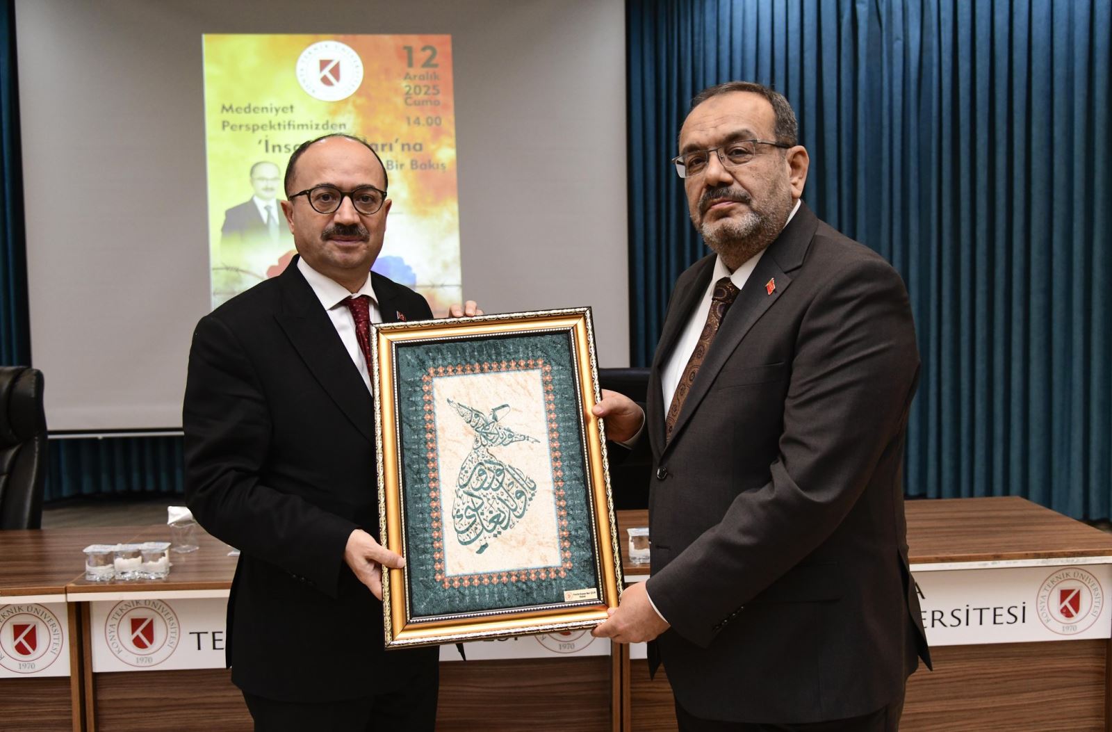 Program sonunda Rektörümüz Prof. Dr. Osman Nuri Çelik, katkılarından dolayı Av. Osman Mesten’e hediye takdiminde bulundu.