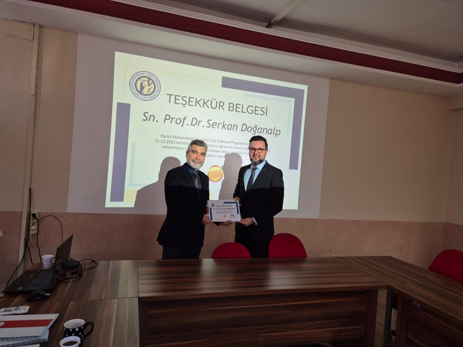 Harita Mühendisliği Anabilim Dalı bünyesindeki Tezli Yüksek Lisans ve Doktora Programlarında görev alarak bilim insanı yetiştirmeye yönelik katkıları olan öğretim üyelerine teşekkür belgesi takdim programı, 06.01.2026 Salı günü saat:11.00’da Bölüm seminer salonunda yapılmıştır. Tüm katılımcılara içten teşekkürlerimizi sunar, başarılarının devamını dileriz.