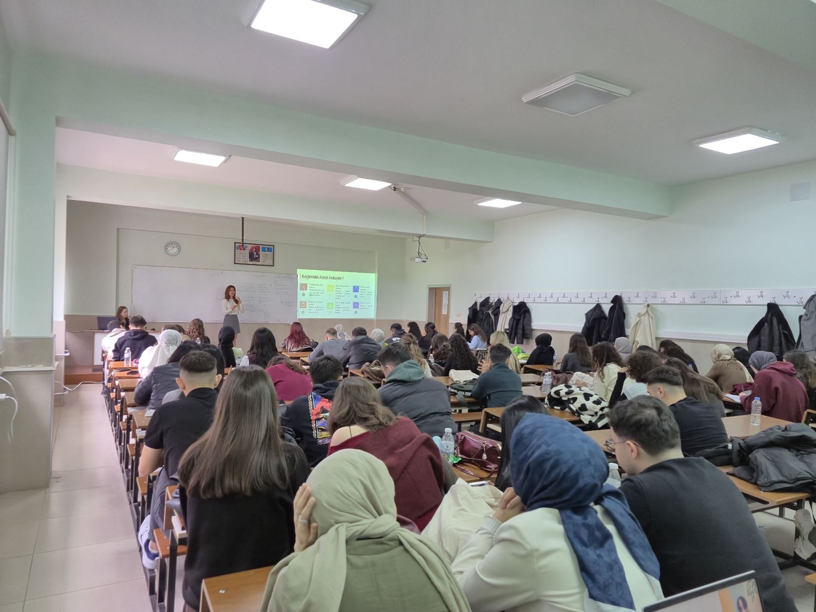 Program kapsamında öğrencilere Psikolojik Danışma ve Rehberlik Uygulama ve Araştırma Merkezi’nin sunduğu psikolojik destek hizmetleri hakkında kısa bir bilgilendirme yapılırken; dikkat ve odaklanma güçlükleri, bağımlılık davranışları ve sağlıklı başa çıkma yollarına ilişkin temel bilgiler paylaşıldı.