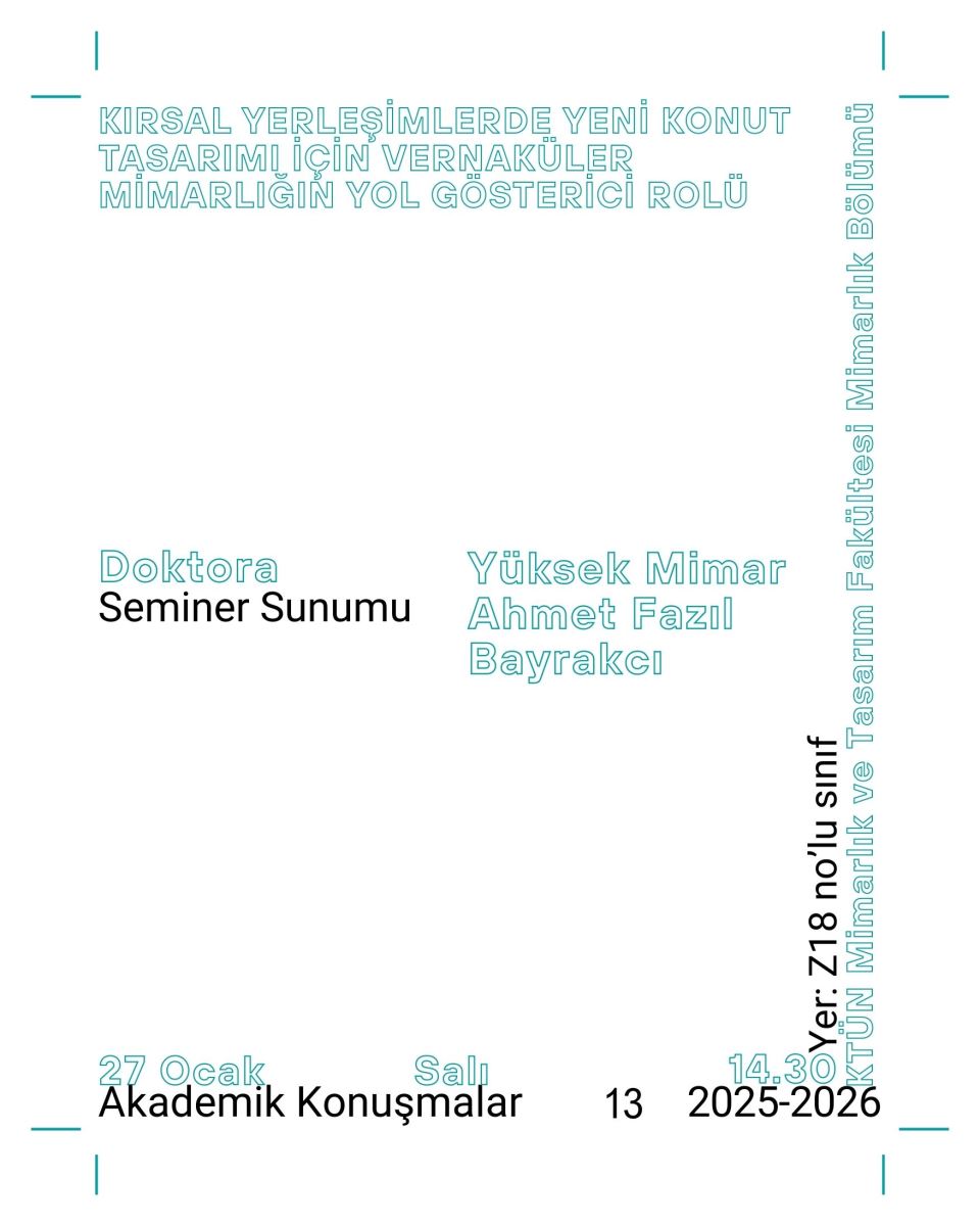 Prof. Dr. Fatih CANAN hocamızın lisansüstü öğrencisi Ahmet Fazıl Bayrakcı'nın doktora seminer sunumu 27 Ocak salı günü saat 14.30’da Z18 nolu sınıfta gerçekleştirilecektir. Katılımınızı bekleriz.