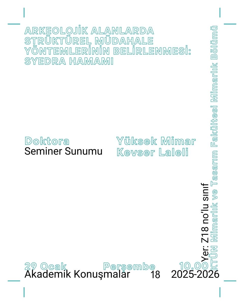 Doç. Dr. Mustafa KORUMAZ hocamızın lisansüstü öğrencisi Kevser Laleli'nin doktora seminer sunumu 29 Ocak perşembe günü saat 10.00’da Z18 nolu sınıfta gerçekleştirilecektir. Katılımınızı bekleriz.