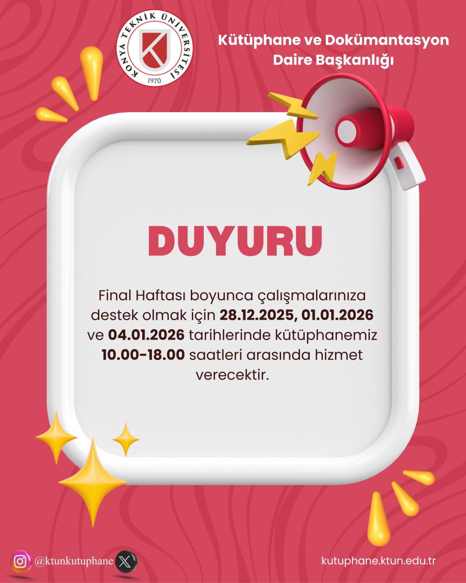 Kütüphane Final Haftası Çalışma Saatleri Hk.