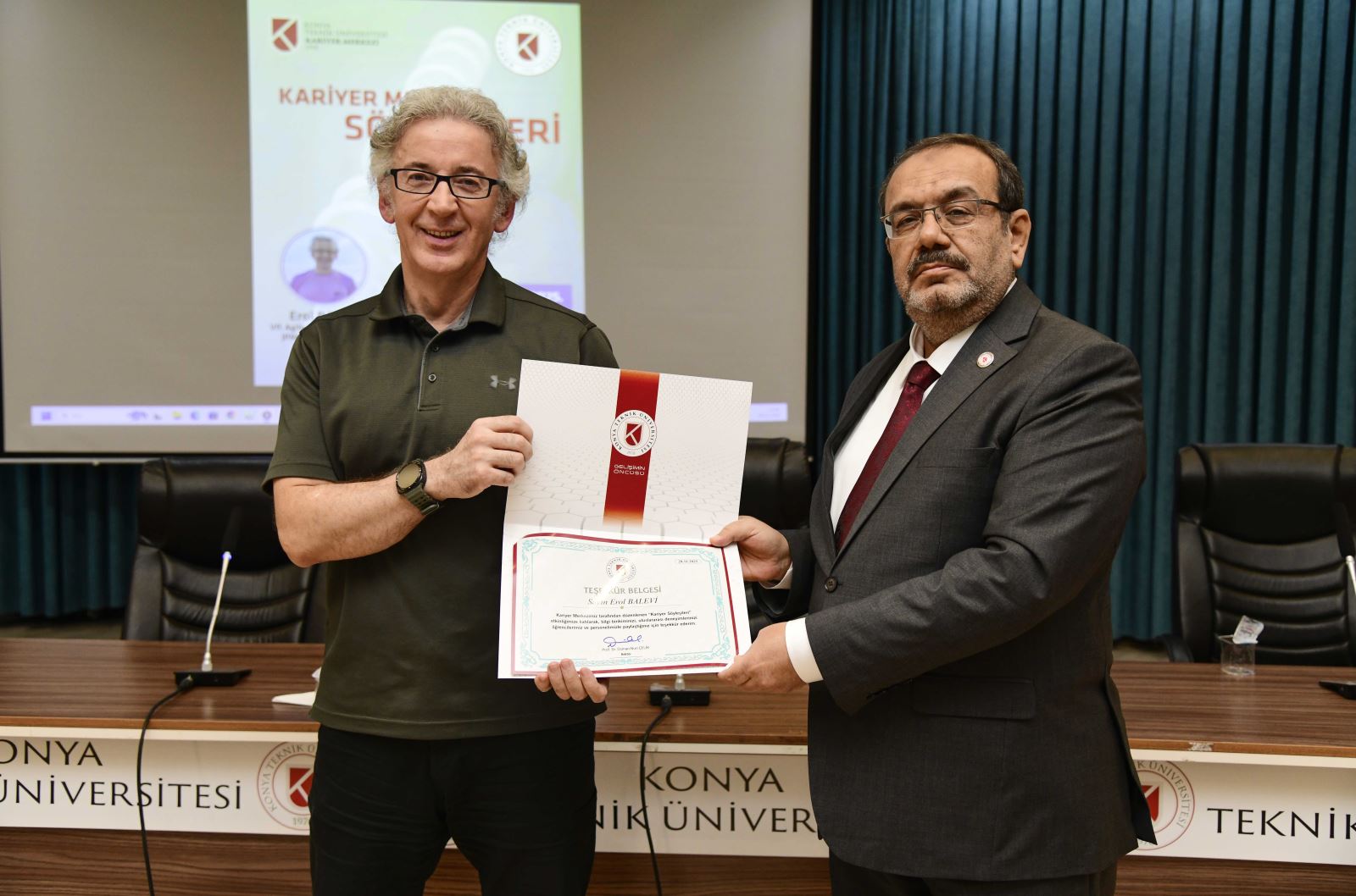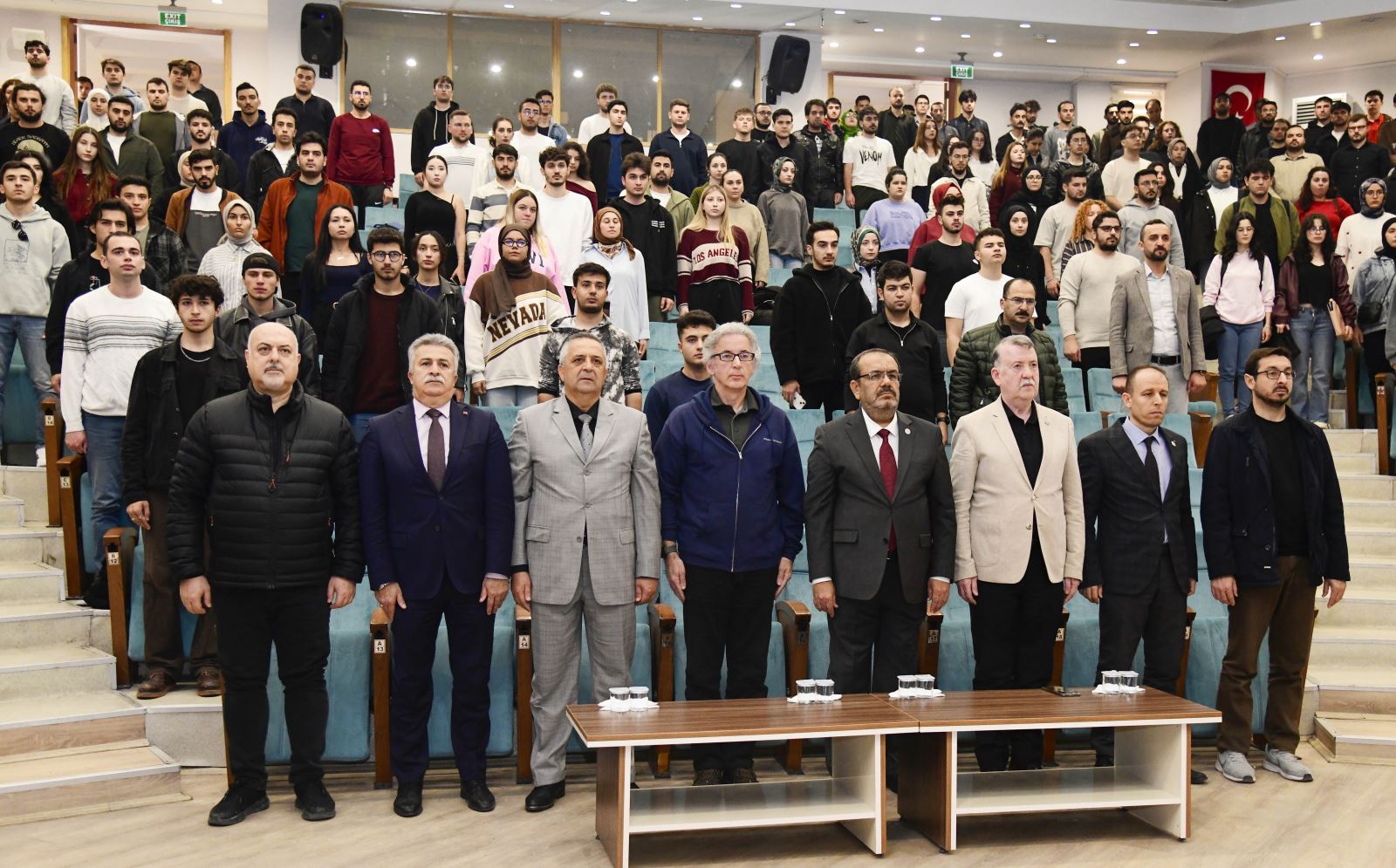 Erol Balevi, etkinlikte, Rektörümüz Prof. Dr. Osman Nuri Çelik ile birlikte öğrencilerden gelen soruları yanıtladı.