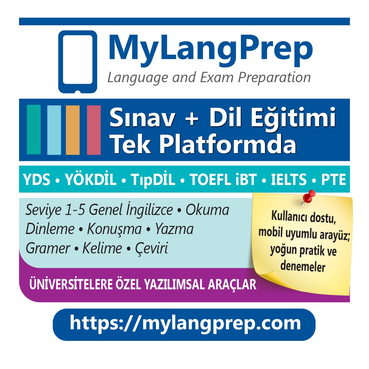 - Sınav Hazırlık Paketleri: (e) YDS, YÖKDİL, TIPDİL, PTE, IELTS, TOEFL iBT