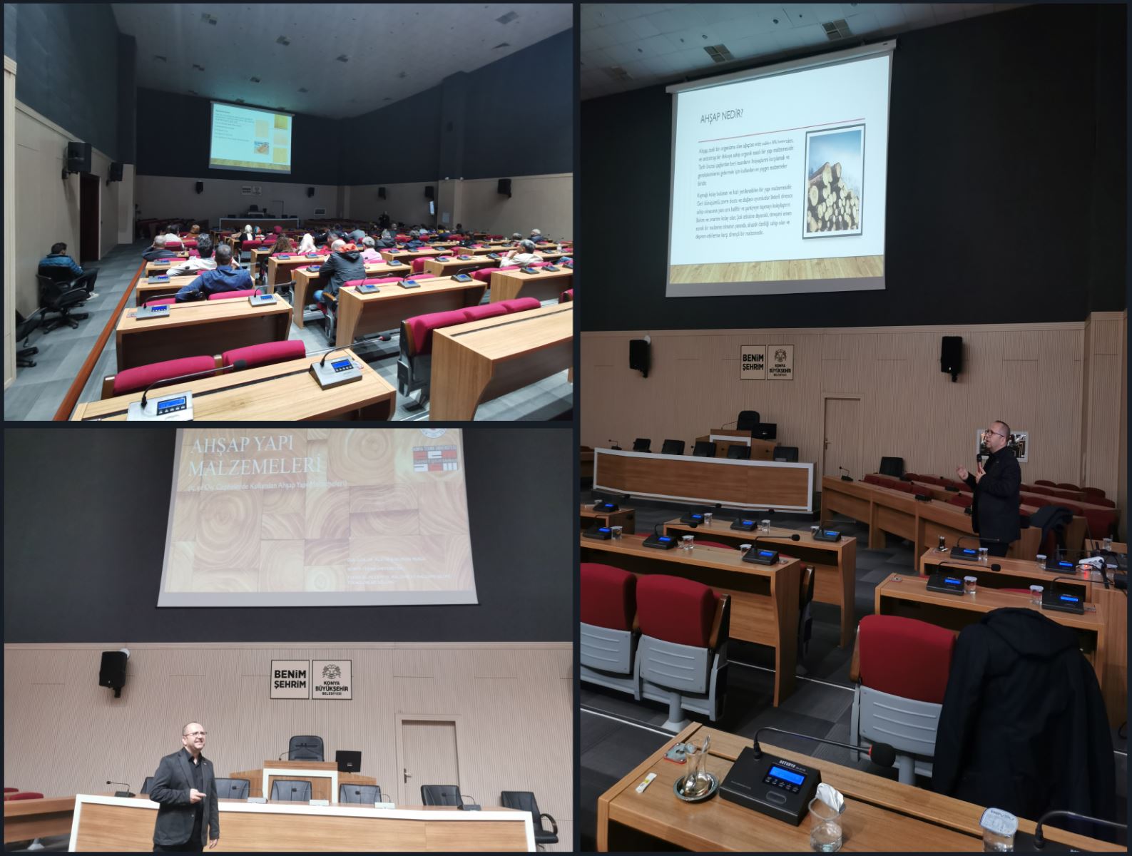 Üniversitemiz Teknik Bilimler Meslek Yüksekokulu ve Sürekli Eğitim Uygulama ve Araştırma Merkezi Müdürlüğü (KTÜNSEM) ile Konya Büyükşehir Belediyesi Makine İkmal, Bakım ve Onarım Dairesi Başkanlığı iş birliği ile “İç ve Dış Cephelerde Kullanılan Ahşap Yapı Malzemeleri” başlıklı eğitim 3 ve 5 Aralık tarihlerinde iki oturum şeklinde gerçekleştirilmiştir.