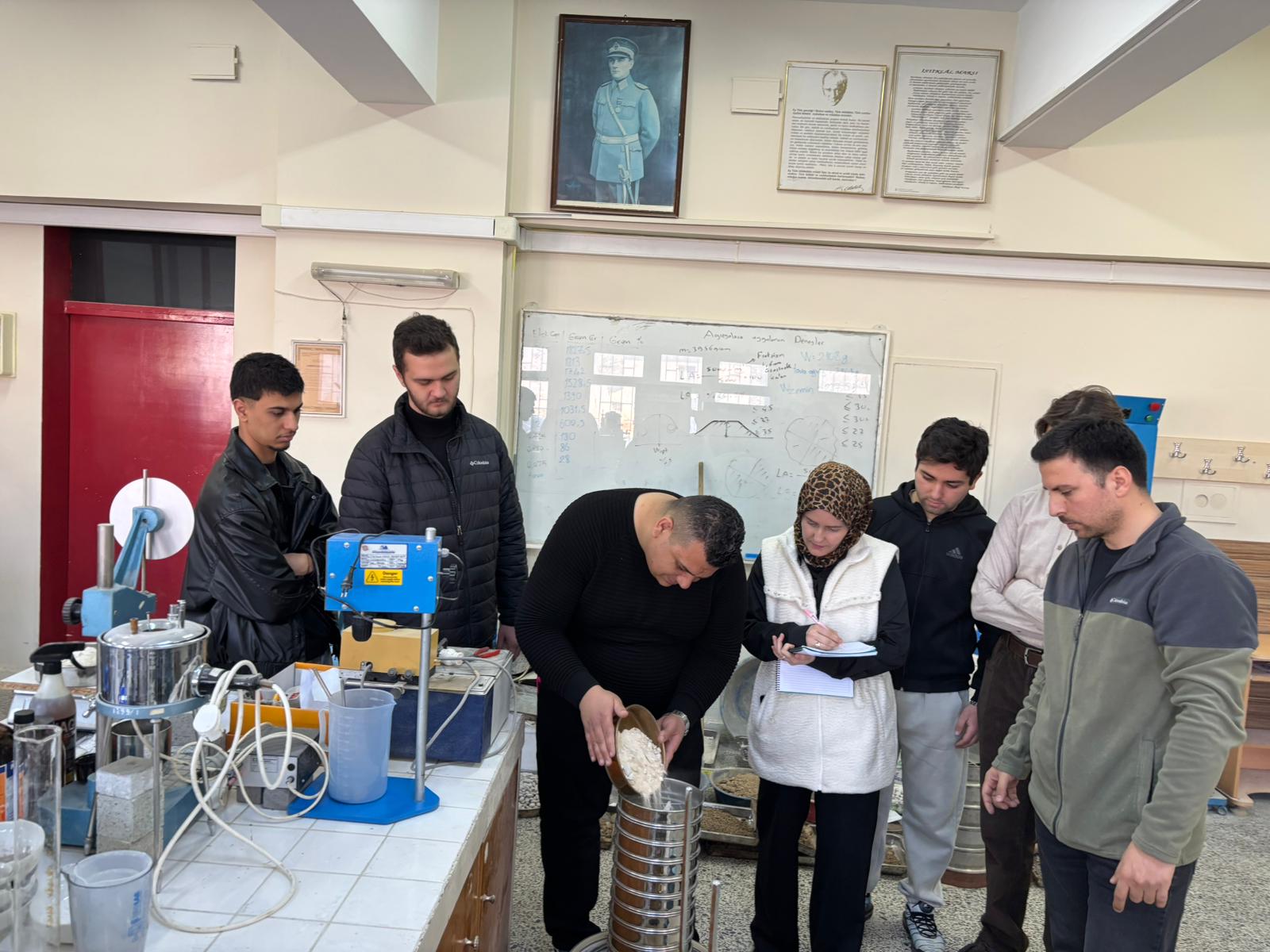 Gerçekleştirilen deney çalışmasıyla öğrenciler, zemin mekaniğinin temel deneylerinden biri olan elek analizi yöntemini uygulamalı olarak öğrenme fırsatı bulmuştur. Deney kapsamında zemin numuneleri belirli standart eleklerden geçirilerek tane boyutu dağılımı belirlenmiş, elde edilen veriler üzerinden zeminin granülometrik özellikleri değerlendirilmiştir. Böylece öğrenciler, zeminin mühendislik özelliklerinin belirlenmesinde tane dağılımının önemini deneysel olarak gözlemleme imkânı elde etmiştir.