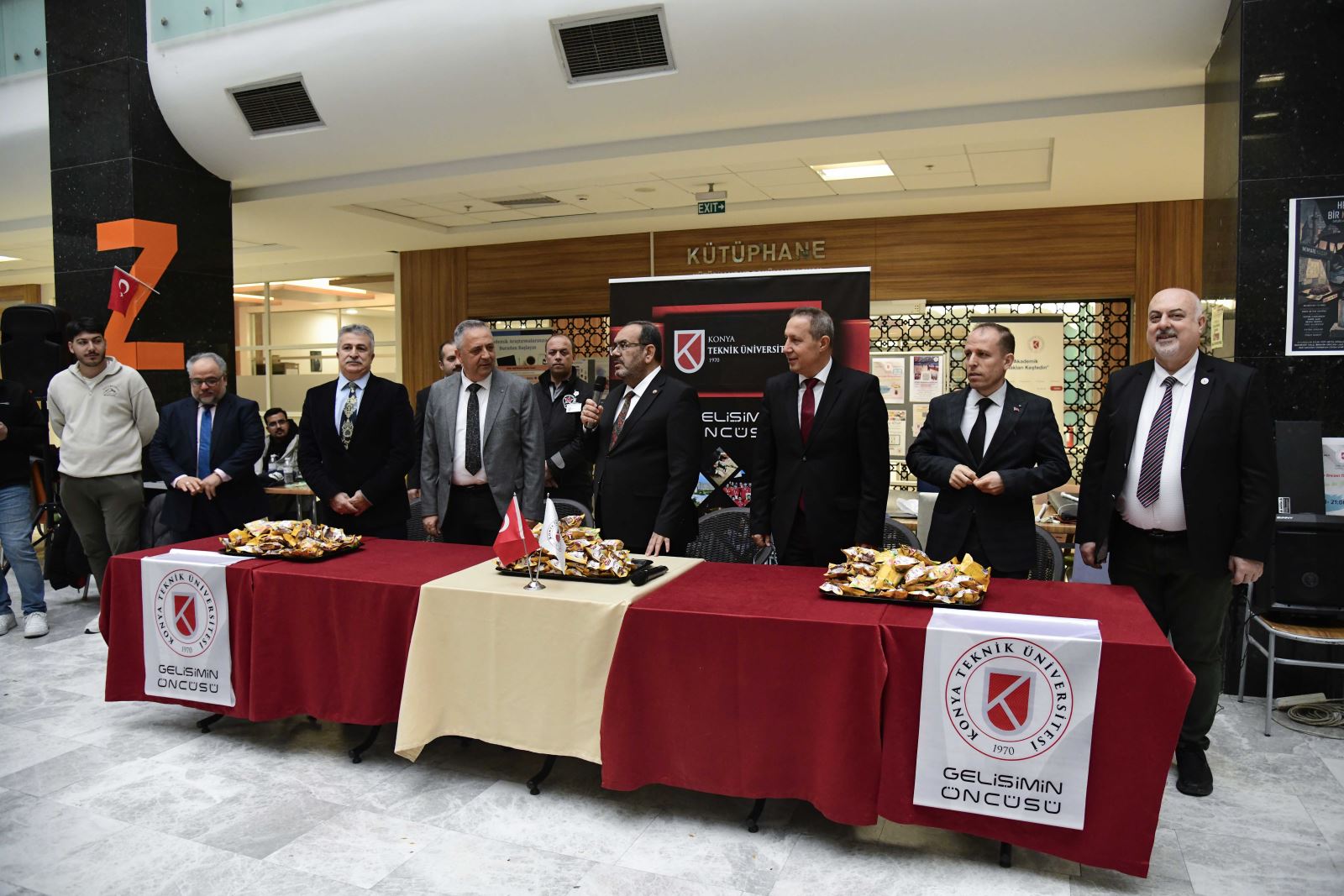 Mimarlık ve Tasarım Fakültesi fuaye alanında gerçekleştirilen etkinliğe, Rektörümüz Prof. Dr. Osman Nuri Çelik, Rektör Yardımcılarımız Prof. Dr. Nurettin Çetinkaya ve Prof. Dr. Ali Köken, Teknik Bilimler Meslek Yüksekokulu Müdürü Prof. Dr. Mustafa Altın, Genel Sekreterimiz Kamil Gök ile çok sayıda akademik ve idari personel ile öğrenciler katıldı.