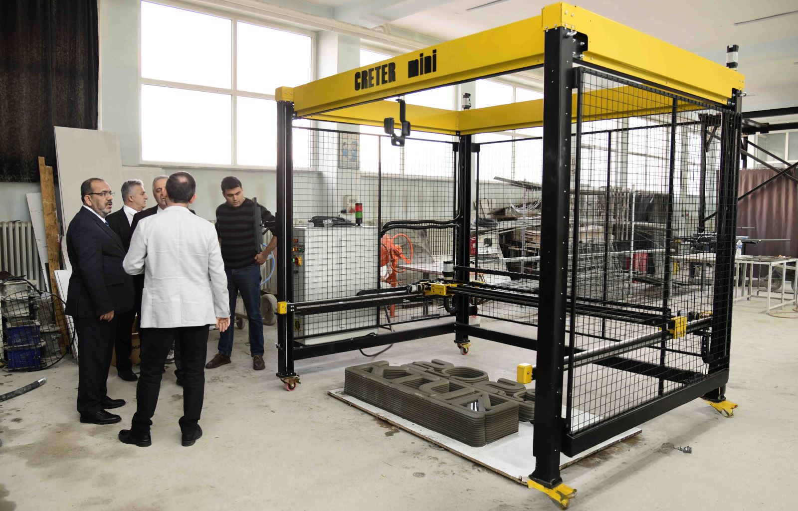 Konya’da kentsel dönüşüm ve inşaat faaliyetleri sonucu artan hafriyat ve yıkıntı atıkları sorununa çözüm üretmek amacıyla, Üniversite bünyesinde 3 boyutlu robotik beton imalat sistemi kuruldu. Kurulan bu altyapı sayesinde, Konya ve çevresinde oluşan inşaat ve yıkıntı atıklarının depolama sahalarında bertarafı yerine işlenerek katma değerli beton ürünlere dönüştürülmesi mümkün hale geldi.