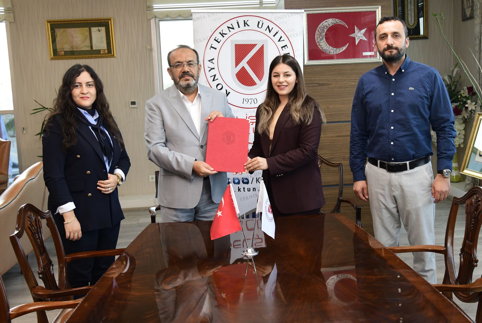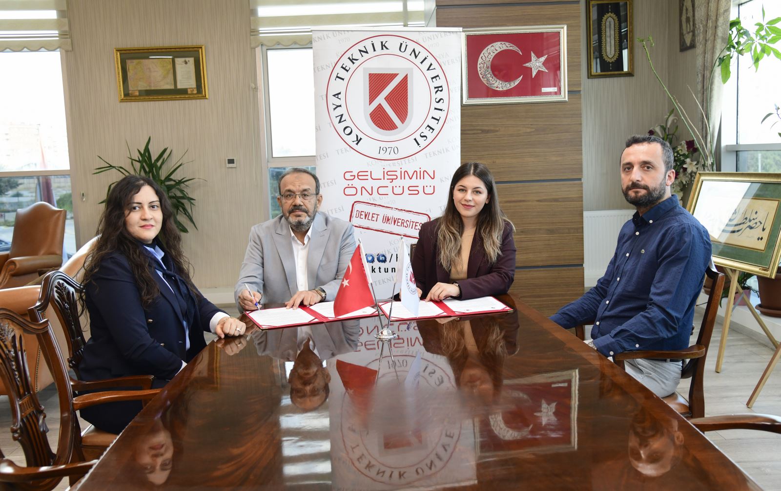 İlk protokol, yabancı dil eğitimine erişimi kolaylaştırmak amacıyla English Time Konya Şubeleri ile yapıldı. Rektörlük makamında gerçekleşen imza törenine Rektörümüz Prof. Dr. Osman Nuri Çelik, English Time Konya Şubesi Kurucuları Uğur Özgün ve Neslihan Özgün ile Kariyer Merkezi Müdürü Öğr. Gör. Dr. Resul Çelik katıldı.