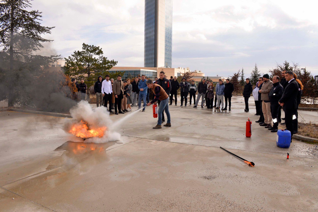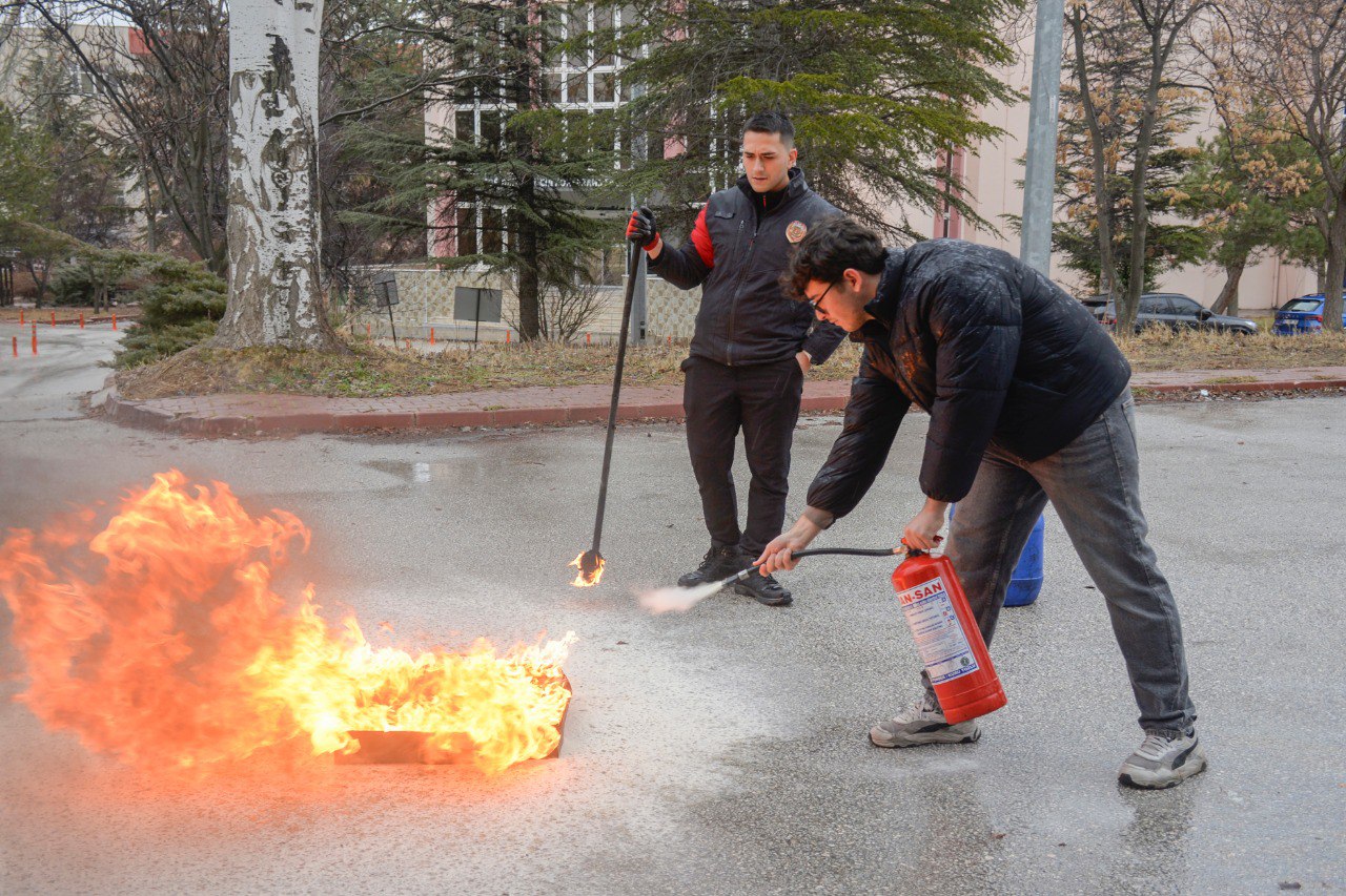 Programın uygulamalı bölümünde ise yangın ve acil durum senaryoları üzerinden tatbikat gerçekleştirildi. Bu sayede katılımcılar, teorik bilgileri pratiğe dökme ve acil durumlarda nasıl hareket edilmesi gerektiğini deneyimleme fırsatı buldu.