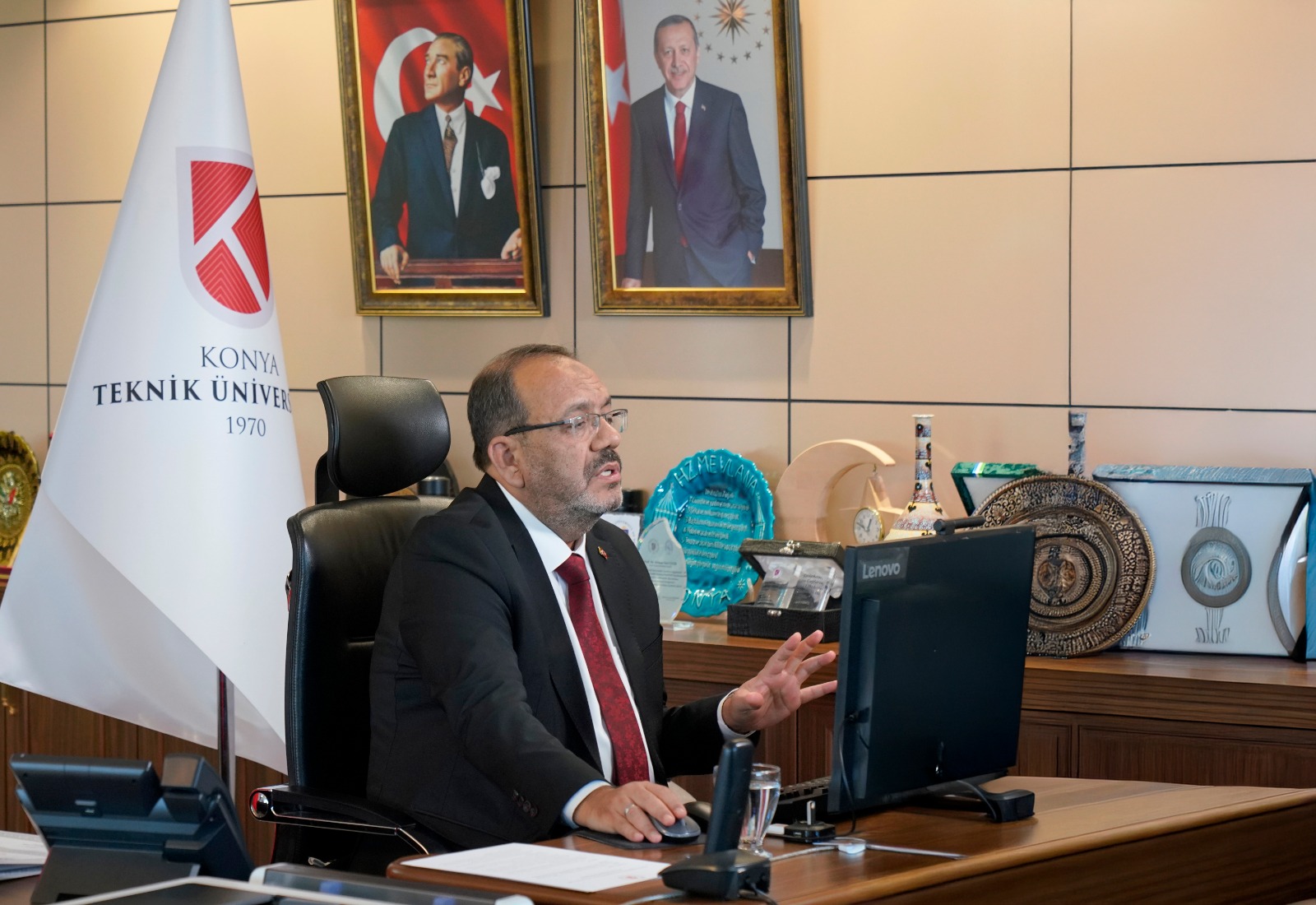 Türkiye’nin köklü teknik üniversitelerinden biri olan KTÜN’ün, bilimsel araştırmalar ve sanayi iş birlikleriyle bölgesel kalkınmada önemli bir rol üstlendiğini belirten Rektörümüz, gençleri çağın ihtiyaçlarına cevap verecek yetkinliklerle donatmayı hedeflediklerini ifade etti. Rektörümüz, öğrencilere sunulan imkanlar ve yurtdışı imkânları, araştırma geliştirme faaliyetleri ve uluslararasılaşma hedefleri hakkında da bilgi verildi.