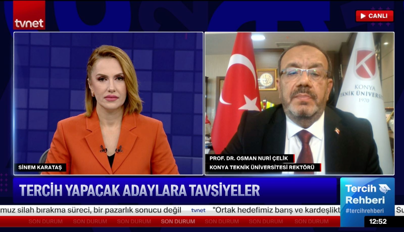 Rektörümüz Prof. Dr. Osman Nuri Çelik, TVNET ekranlarında canlı olarak yayınlanan Tercih Rehberi programına konuk olarak katıldı. Yükseköğretim kurumlarını tercih edecek adaylara yönelik gerçekleştirilen programda Prof. Dr. Çelik, Üniversitemizin eğitim olanakları, kampüs yaşamı, öğrenci destekleri ve gelecek vizyonu hakkında detaylı bilgiler verdi.