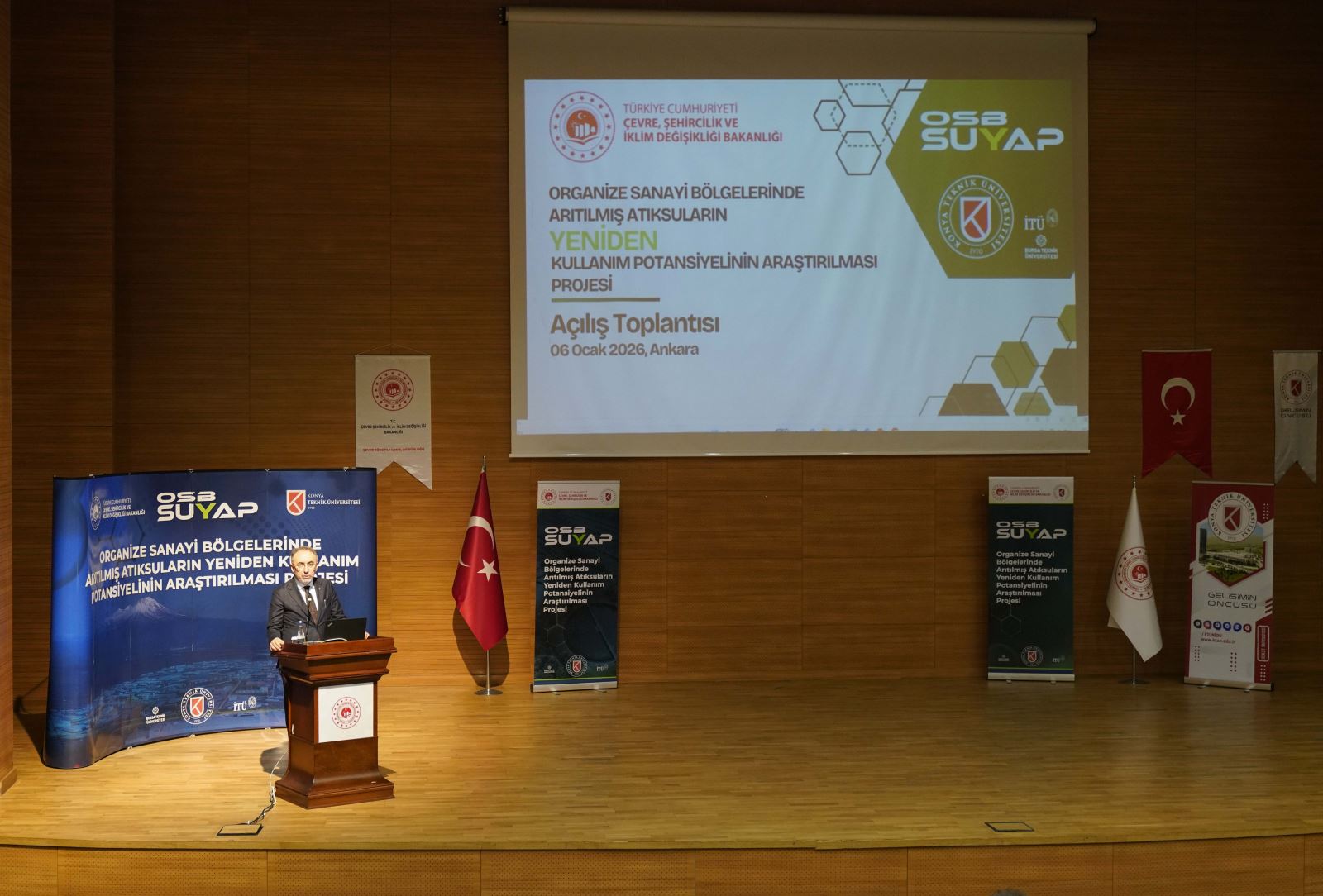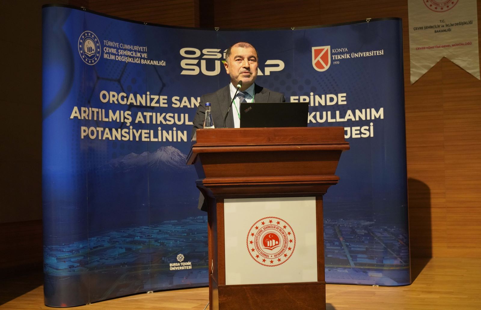 Konya Teknik Üniversitesi Rektörü Prof. Dr. Osman Nuri Çelik konuşmasında, OSB SUYAP Projesinin, ülkemizin su güvenliğine, sanayimizin rekabet gücüne ve çevresel sürdürülebilirliğe önemli katkılar sağlayacağını ve OSB SUYAP Projesini, gelecekte yürütülecek yeni ortak projelerin ve ülke genelinde uygulanabilecek politikaların öncüsü olarak gördüğünü söyledi.