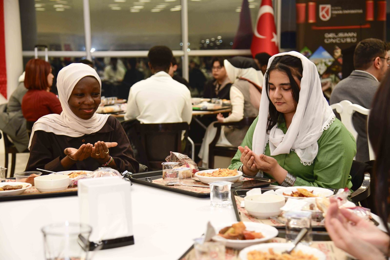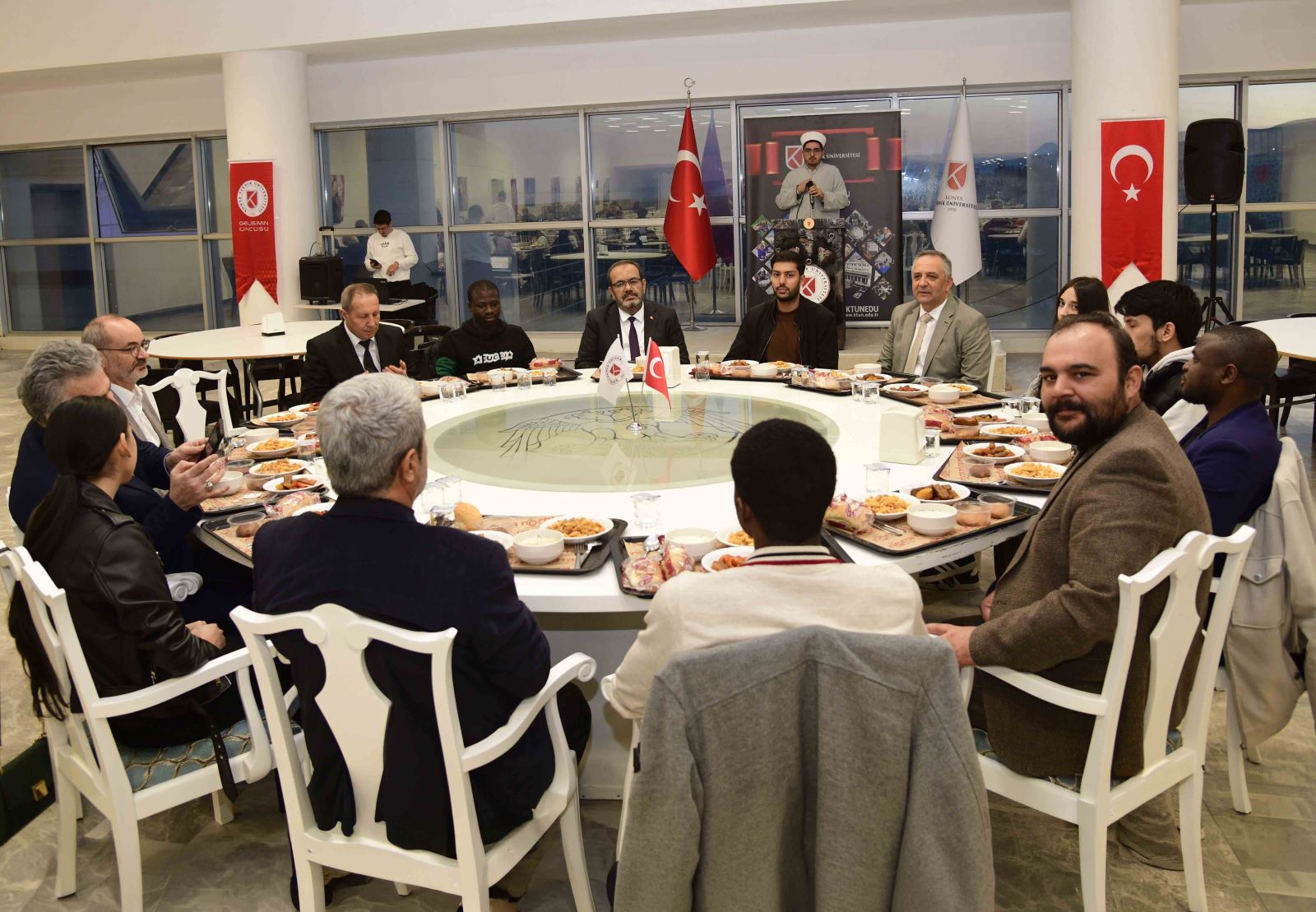 Uluslararası öğrencilerin üniversiteye önemli bir kültürel zenginlik kattığını ifade eden Rektörümüz konuşmasında, “Farklı ülkelerden gelen öğrencilerimizin üniversitemizde bir araya gelmesi, kültürel çeşitliliği ve karşılıklı anlayışı güçlendiren çok değerli bir ortam oluşturuyor. Sizler yalnızca öğrencimiz değil, aynı zamanda üniversitemizin ve ülkemizin gönül elçilerisiniz. Ramazan ayının paylaşma ve kardeşlik ruhunu sizlerle birlikte yaşamaktan büyük mutluluk duyuyoruz.” dedi.